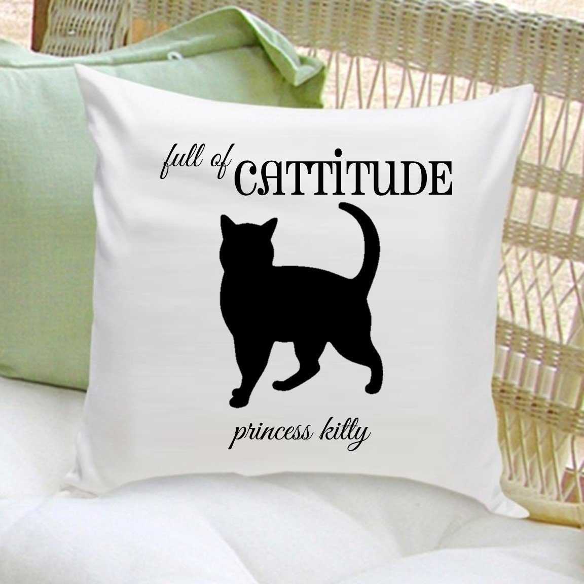 Add some personality to your sitting area while showing off your favorite feline with this personalized throw pillow.