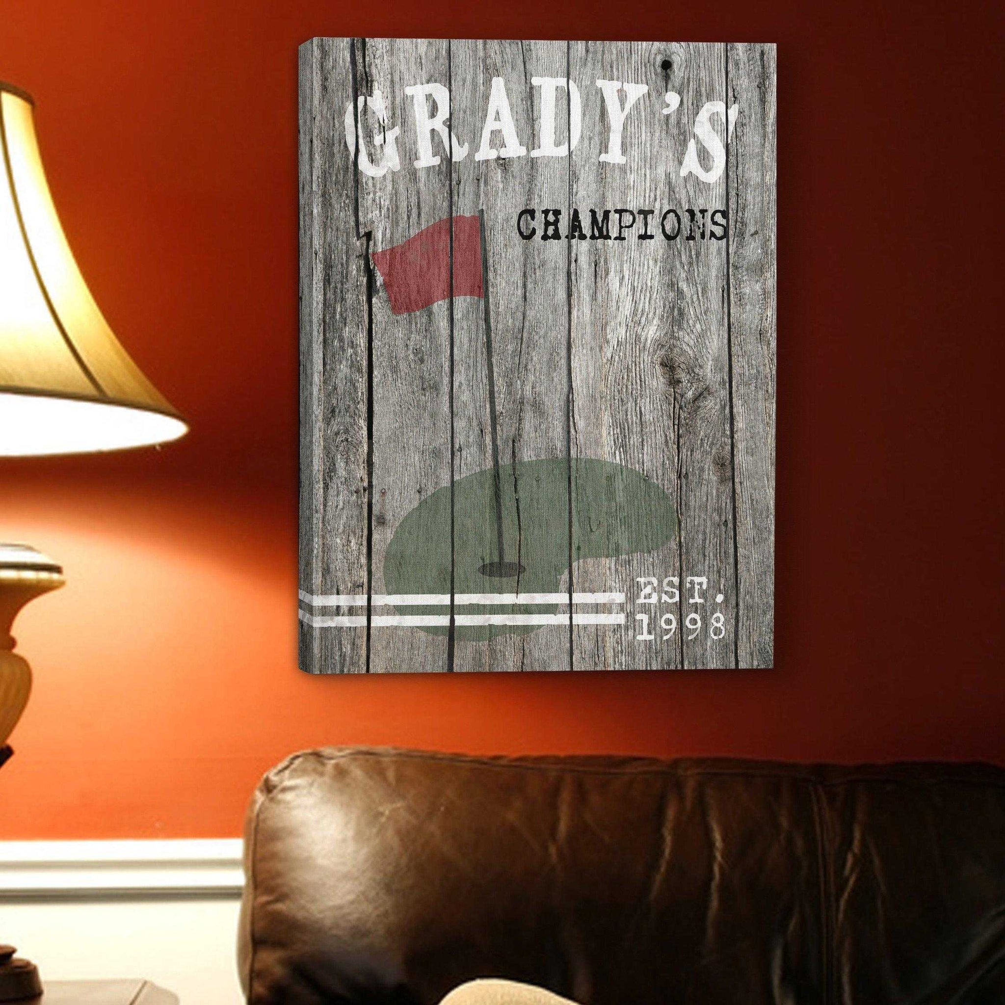 Score when you give your favorite guy this fun, personalized baseball sports canvas print. With its unique vintage weathered wood-look, the personalized gallery wrapped canvas is ready to hang and will fit in with any decor. Featuring old-fashioned typewriter font and plenty of room for personalization.