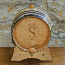 Makes a great addition to the home bar, man cave or counter top while perfectly aging your favorite liquor. Barrel comes with its own stand. Includes instructions for curing before using and for creating and aging your own spirits. Spigot and bung make for convenient serving and filling. Personalized with Last Name.  We will use the first initial of the Last Name as the Monogram.