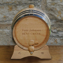Age your own with our Personalized Custom Whiskey Barrel. The steel-banded oak barrel lets you take a basic bottle of whiskey and ages to your tastes – mellow, smooth, mature and perfect for sipping! The personalized, custom 2 liter barrel can be used for aging or serving your favorite tequila, brandy, scotch, bourbon or cognac.