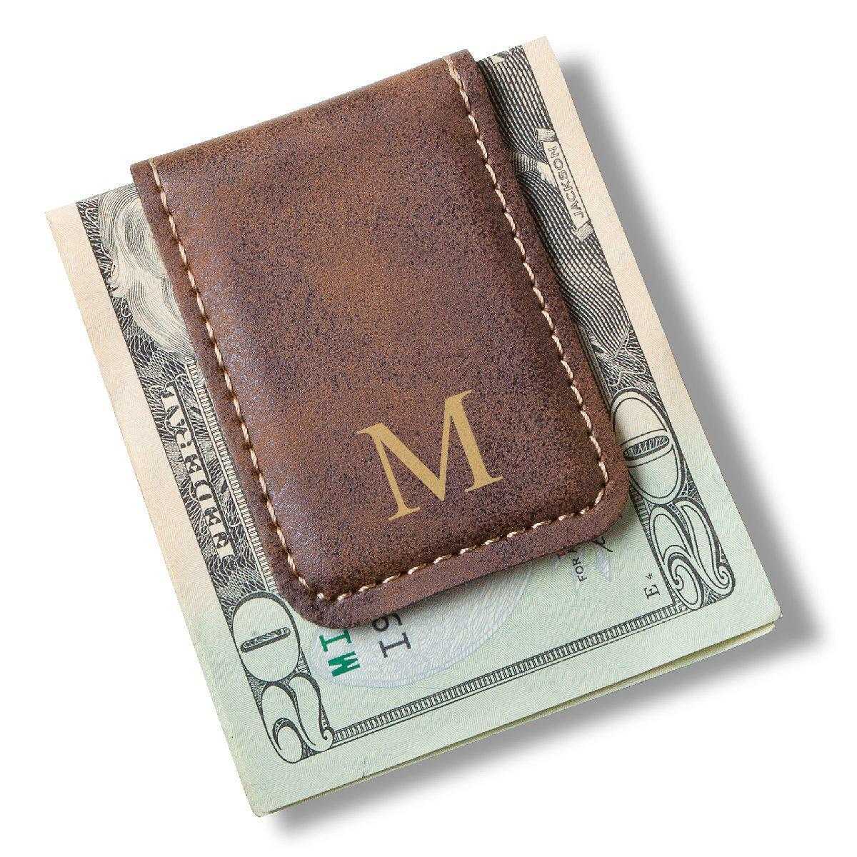 Surprise him with a birthday gift of cash folded into this compact money clip or give one to a friend or family member in the service industry, where they can keep their tip money securely in one place, without losing a single hard-earned dollar. Choose one for yourself, or as a personalized gift for husbands, fathers, brothers, friends, or groomsmen. The smooth leather-like money clip also makes a perfect gift for executives on the go who want minimal fuss with cash.